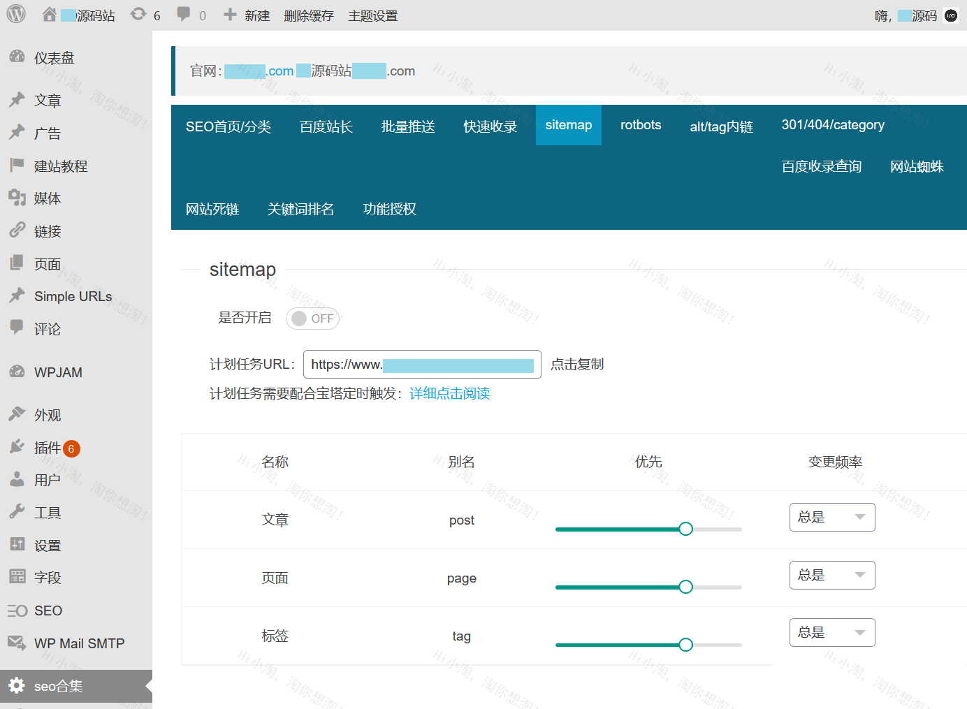 含百度站长、tag标签内链、百度地图sitemap、关键词排名查询监控、网站蜘蛛、robots、图片alt标签、天级推送、category隐藏、死链查询、百度自动推送、批量提交URL到站长、百度收录查询、批量推送未收录、301/404等功能。
